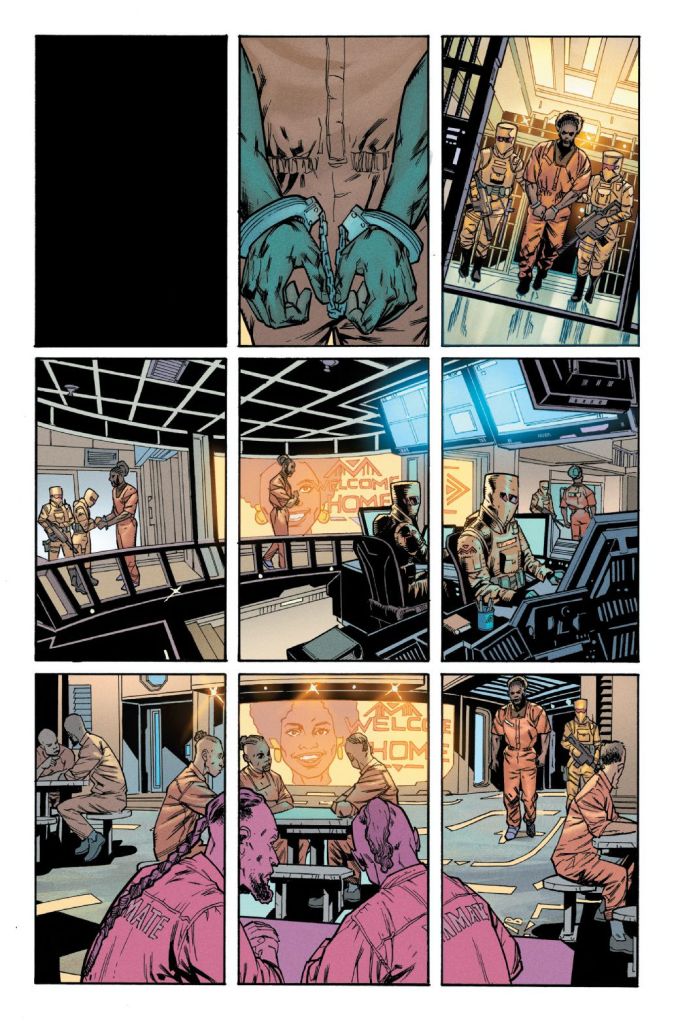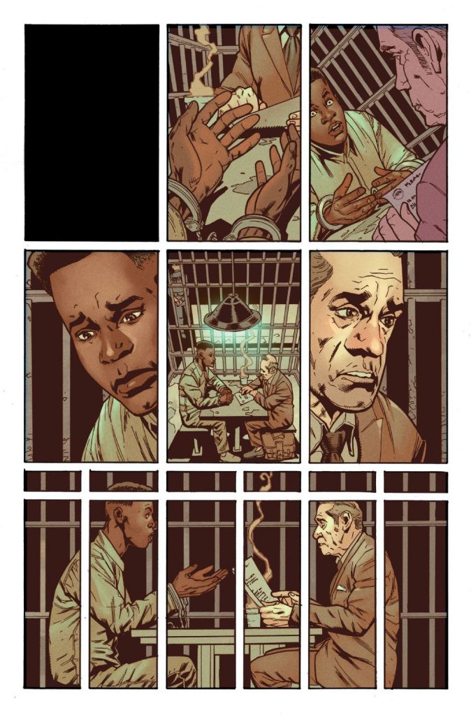 The Ultimates #9 reimagines Power Man on Earth-6160 by turning him into a career prison inmate radicalized into becoming an activist, patterned after a real-life activist, George Jackson. Deniz Camp’s gritty tone reads like a Blaxploitation film, and Chris Allen’s art makes the 9-panel structure succeed beyond the limitations of the format. That said, patterning an original(ish) black character after a radical Marxist and convicted murderer is a creative choice in extremely poor taste.