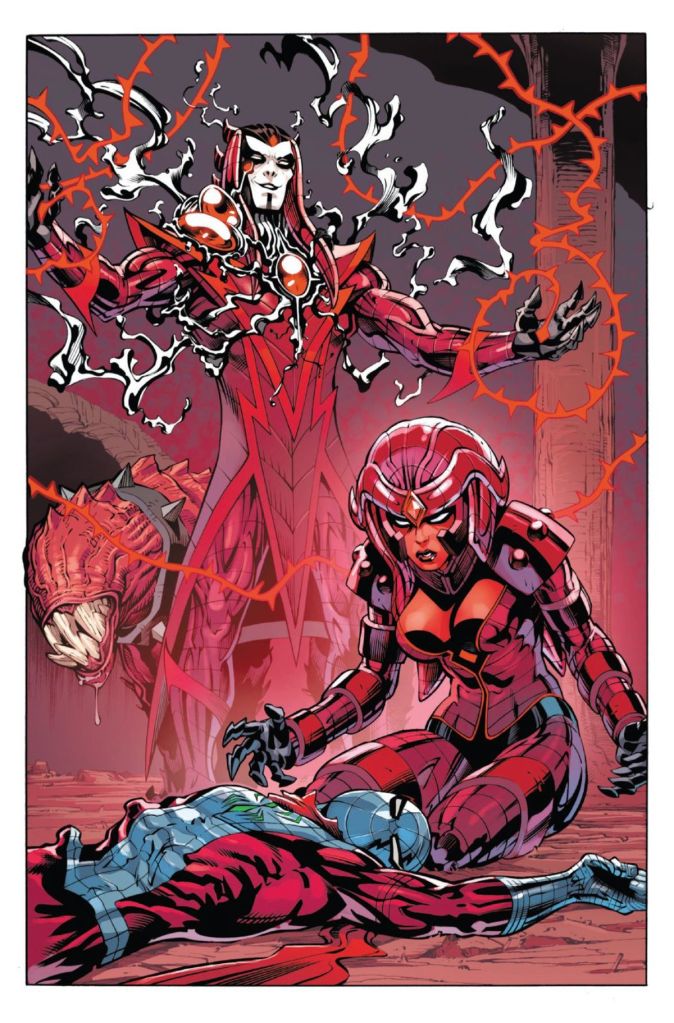 The issue ends with Callix attacking Cyttorak to claim his father’s throne and Spider-Man returning from the dead better than new because Cyra granted him life and the unstoppable power of the Juggernaut.