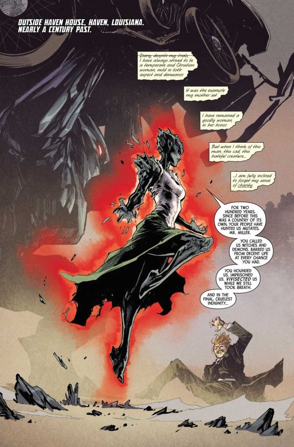 The issue ends with a flashback to Miss Henrietta choosing to let Agent Miller live after their fight in the past and the X-Men joining the fight in the Penumbra in the present.