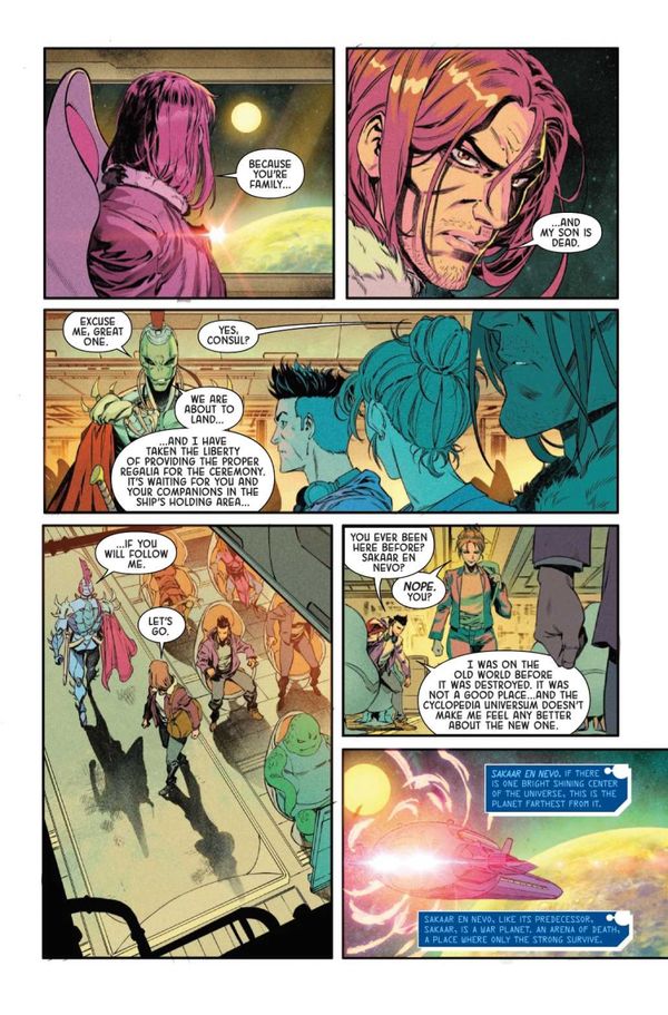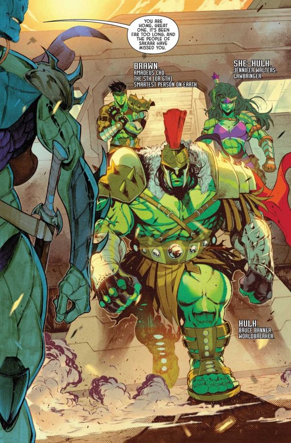The only criticism, which is relatively minor, is the pointless presence of Amadeus Cho and She-Hulk. Despite their prominence on the cover and marketing materials, they contribute nothing to this first issue. Jessica Walters is left behind to mind Sakaar while Hulk and Cho head to the Hub. Once they get there, all the character interactions are with Hulk. Cho stands around in the scene but says little and contributes less. The non-Banner Hulks may do more in the following issues, but for now, it feels like a minor bait-and-switch.