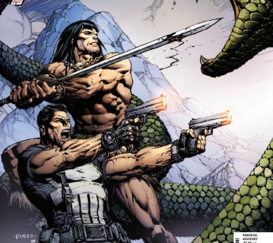 Conan & The Punisher attempt to walk out of the Savage Land hauling the caskets of Frank’s family… through Antarctica. Frank Castle never was much of a religious man…but now he’s firmly “Crom-curious” Watch out for the last page, it’s a doozy. Continue reading SAVAGE AVENGERS #6 Preview